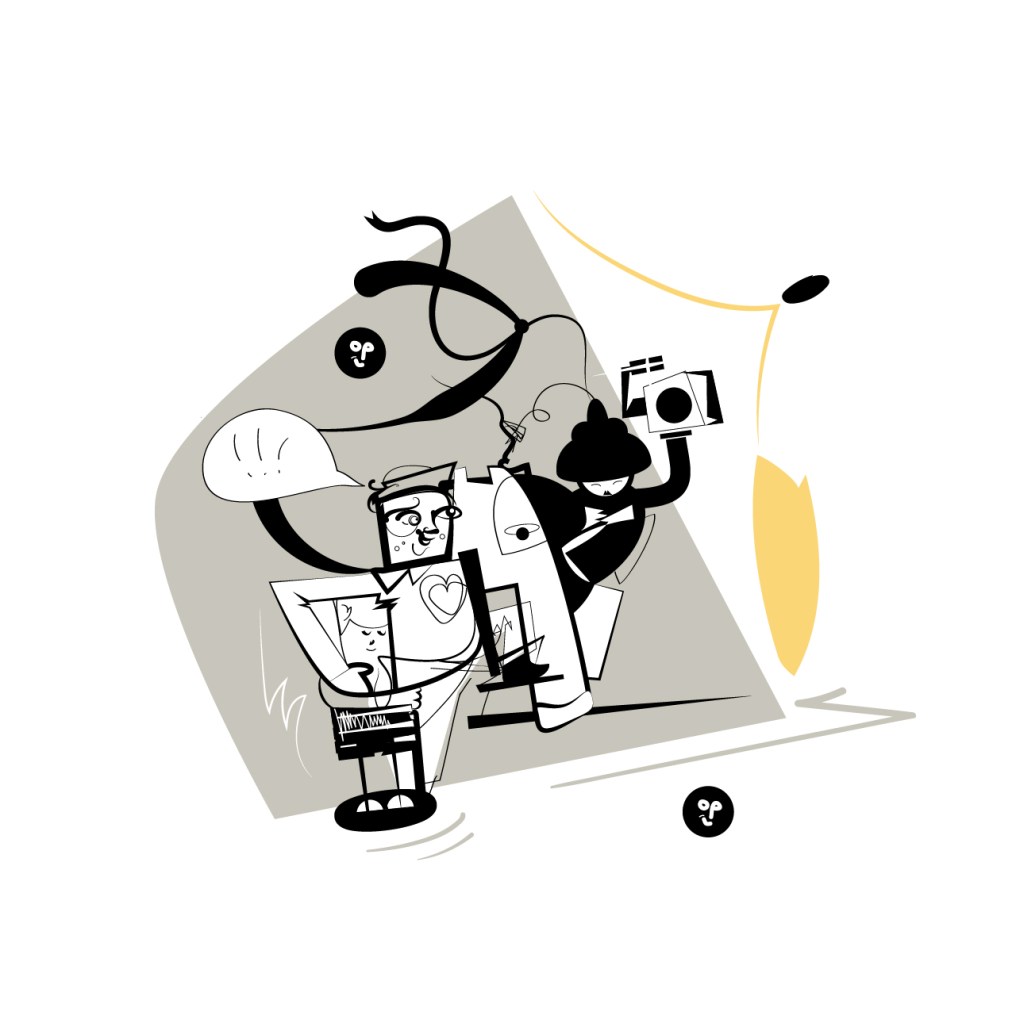 These vector drawings can be sold as NFT or a printed goodie. Here there are a couple of examples from the first black and white versions that got out as A4 and A5 prints for an art pop up shop we created with a colleague of mine.